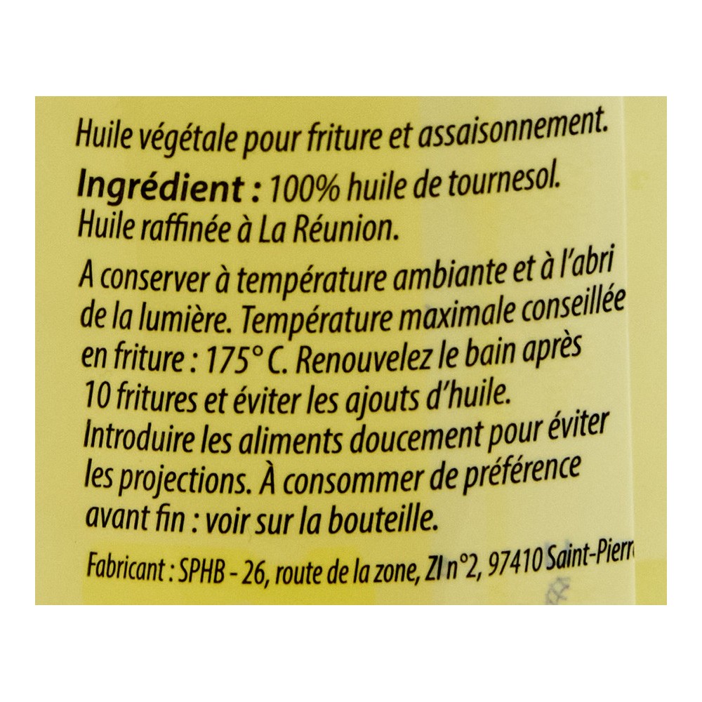 Température maximale conseilée en friture: 175 °C. Renouveler le bain après 10 fritures et éviter les ajouts d'huile. Introduire les aliments doucement pour éviter des projections
