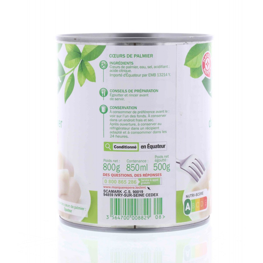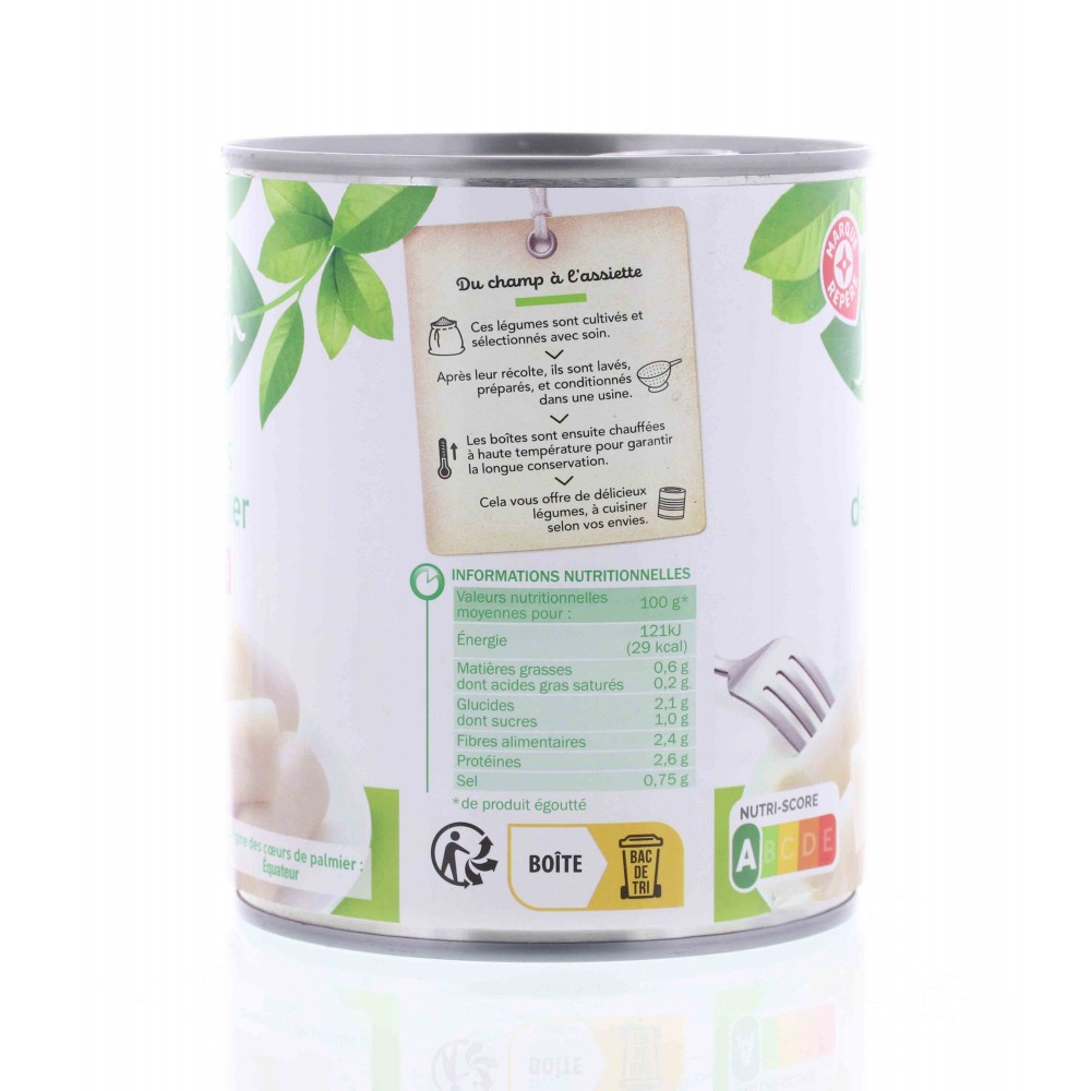 Cœurs de palmiers, eau, sel, acidifiant : acide citrique.