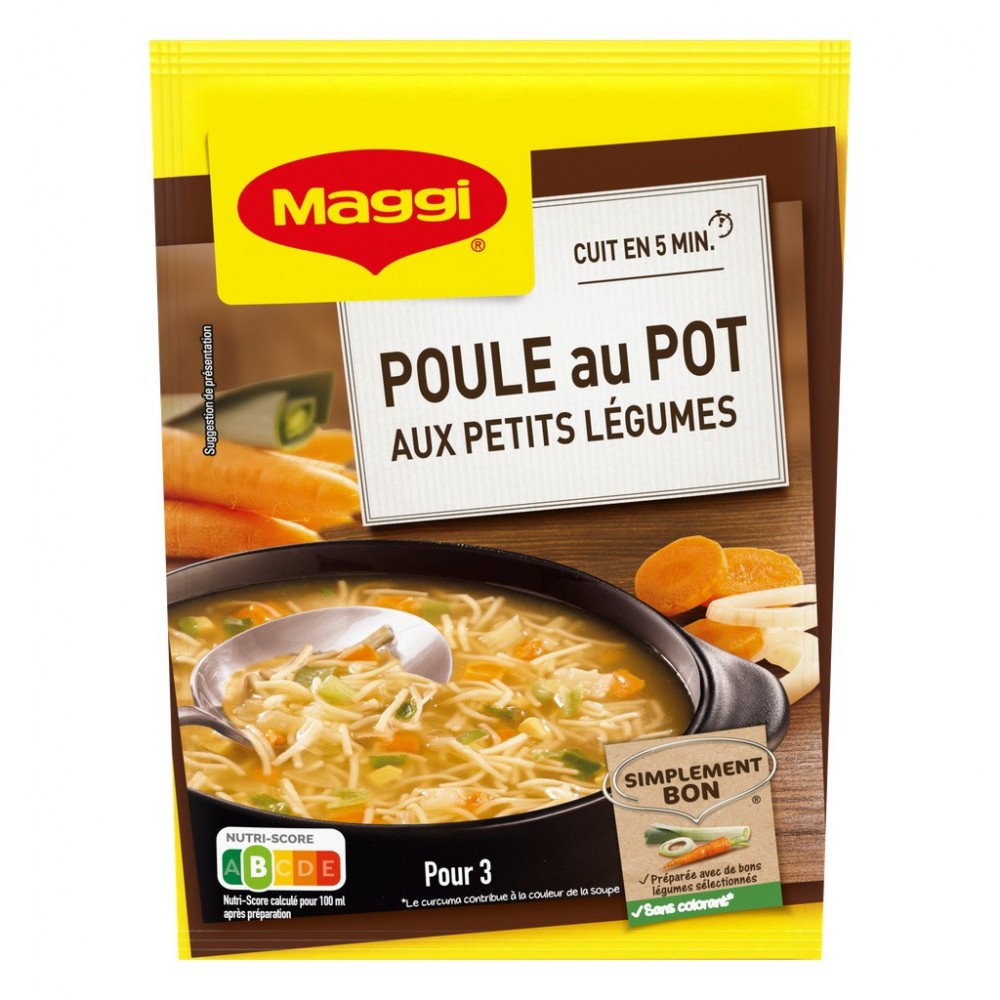 Le savoir-faire MAGGI: une recette inspirée de la tradition culinaire française qui allie de bons morceaux de légumes, de la volaille et des vermicelles fondants avec des aromates et juste ce qu'il faut de sel pour une soupe savoureuse. Avec MAGGI, retrouvez tout le plaisir d'une bonne soupe cuisinée, prête en 5 minutes seulement. Régalez-vous !