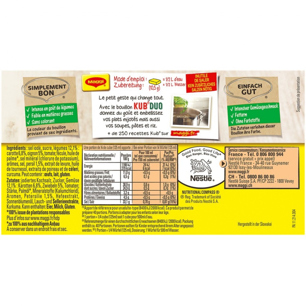 MAGGI Bouillon KUB DUO Légumes + Herbes du marché 105g