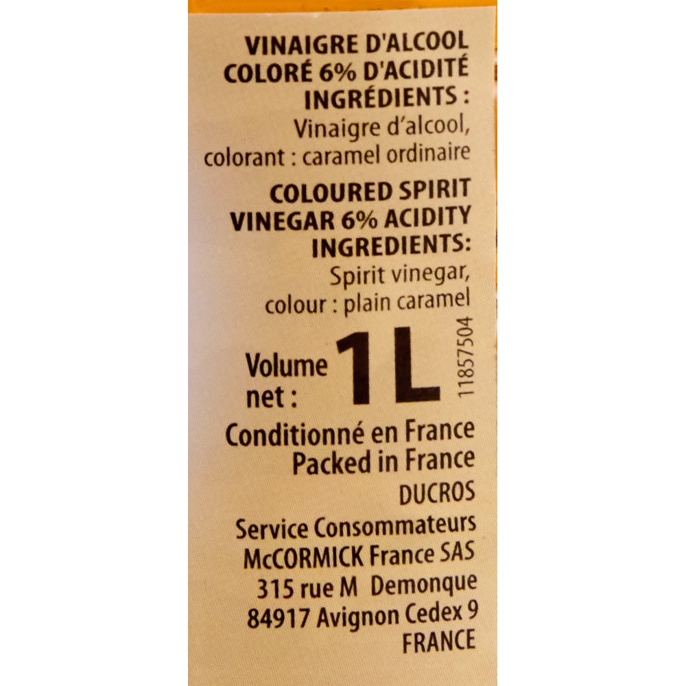 Vinaigre d'alcool coloré - DUCROS - 1L