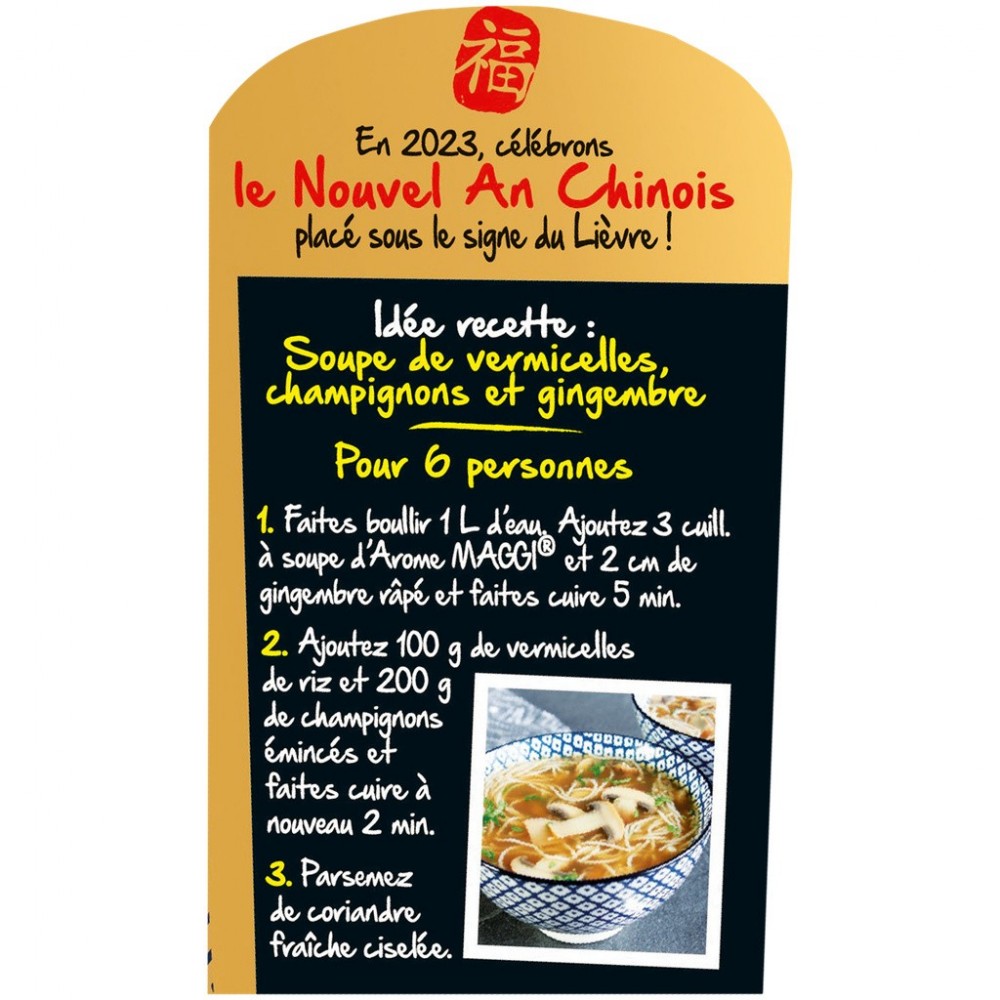 Un concentré de saveurs 100% végétal. L'Arome MAGGI est un assaisonnement comme le sel et le poivre. L'Arome agrémentera d'une saveur unique tous vos plats, chauds et froids, en toute légèreté.