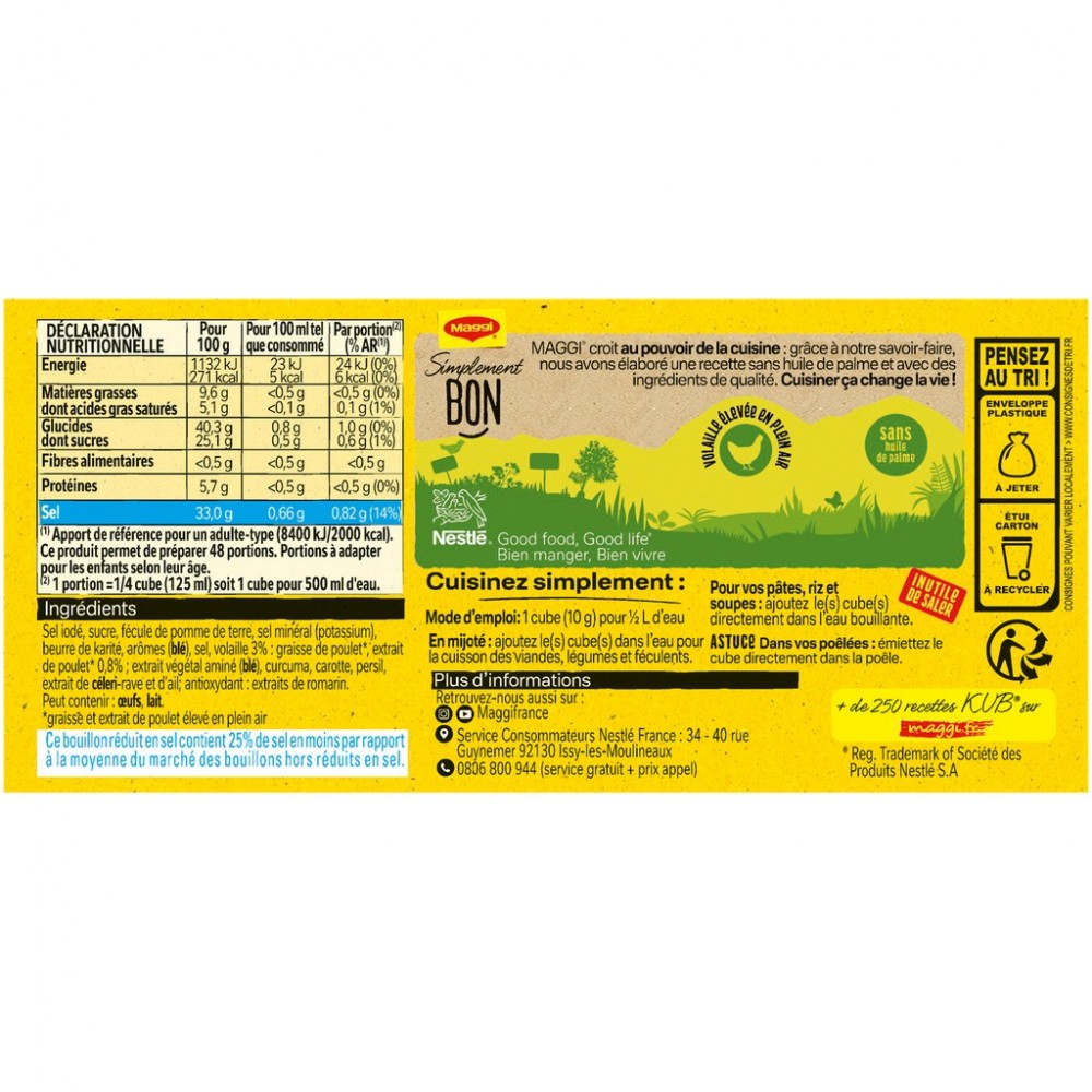 MAGGI Bouillon KUB Volaille Réduit en sel de -25% 120g