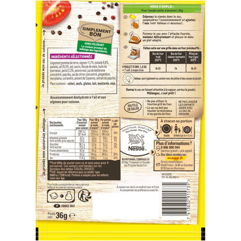 Réinventez vos plats du quotidien avec PAPILLOTES de MAGGI et son subtil mélange d'herbes et d'épices ! Vous réussirez à coup sûr un poulet délicieux, tendre et juteux, sans ajouter de matières grasses. Craquez pour PAPILLOTES Poulet Ail et Oignon de MAGGI et réalisez, en seulement 3 étapes, un poulet savoureux aux notes intenses d'ail et d'oignon. De plus, nous avons réduit de 15% le poids de l'emballage externe de nos papillotes ; c'est donc environ 4 tonnes de plastique en moins par rapport à la production de papillotes en 2021. Cette réduction ne concerne pas le sac de cuisson qui reste toujours aussi pratique !