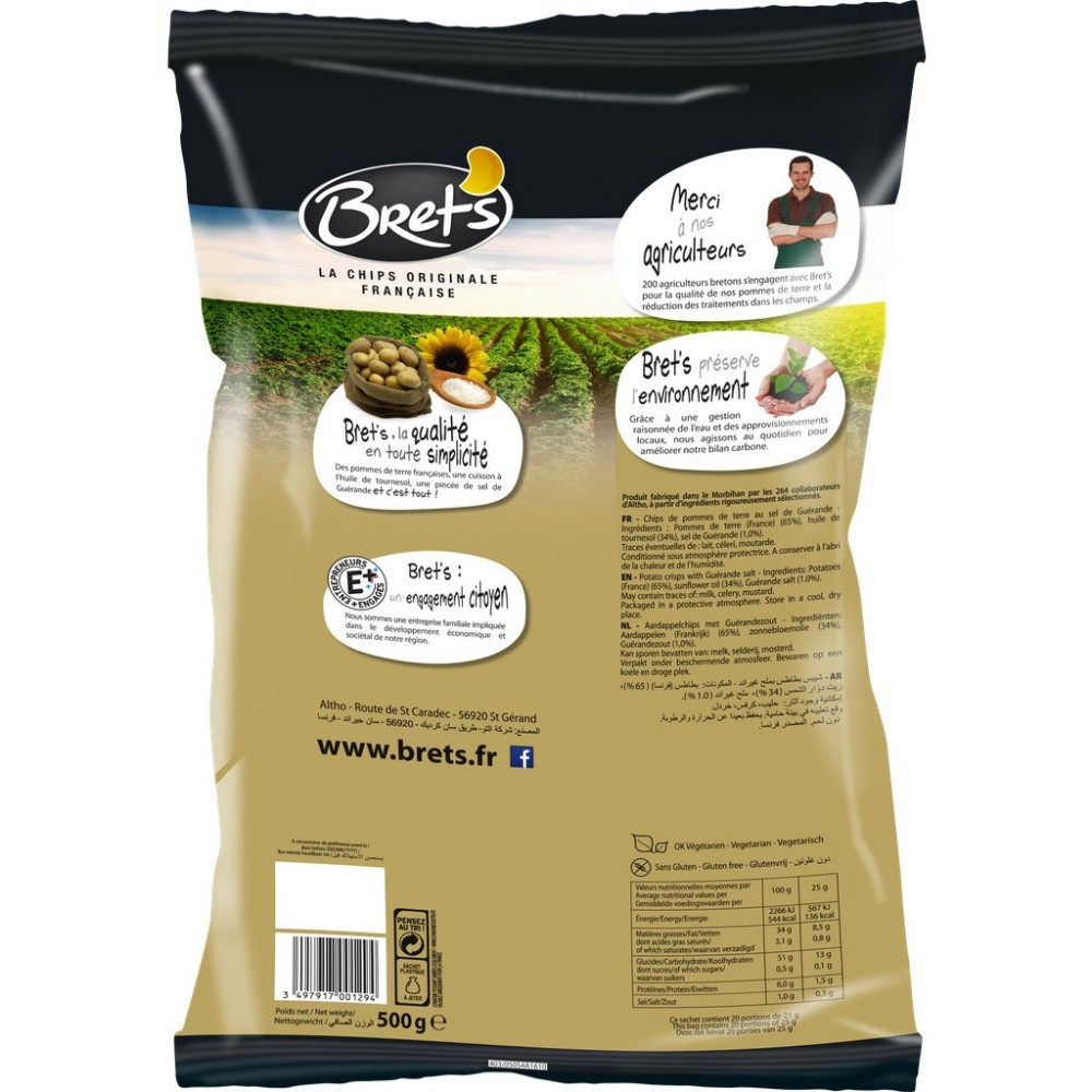 Chips de pommes de terre au sel de Guérande - Ingrédients : Pommes de terre (France) (65.4%), huile de tournesol (34%), sel de Guérande (0.6%).