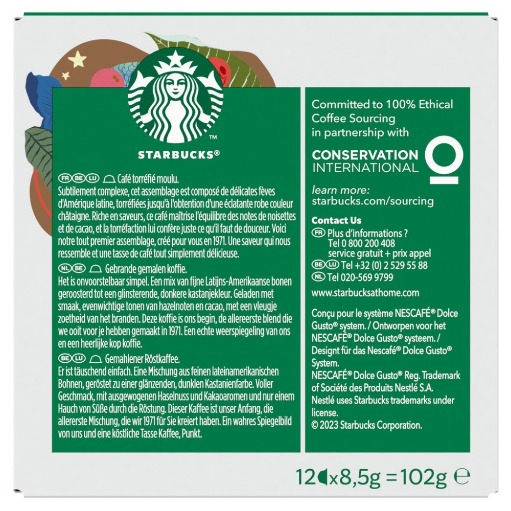 Découvrez les capsules STARBUCKS House Blend by NESCAFÉ DOLCE GUSTO, un café 100% pur Arabica à préparer chez vous avec votre machine NESCAFÉ DOLCE GUSTO. Subtilement complexe, cet assemblage est composé de fèves délicates d'Amérique latine, torréfiées jusqu'à l'obtention d'une robe chatoyante couleur châtaigne. Riche en saveurs, ce café maîtrise l'équilibre des parfums de noisettes et de cacao. Un format boîte contenant 12 capsules vous permet de préparer 12 tasses de café House Blend. Intensité 8.