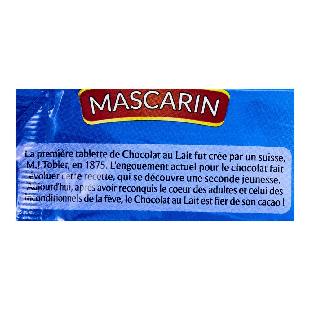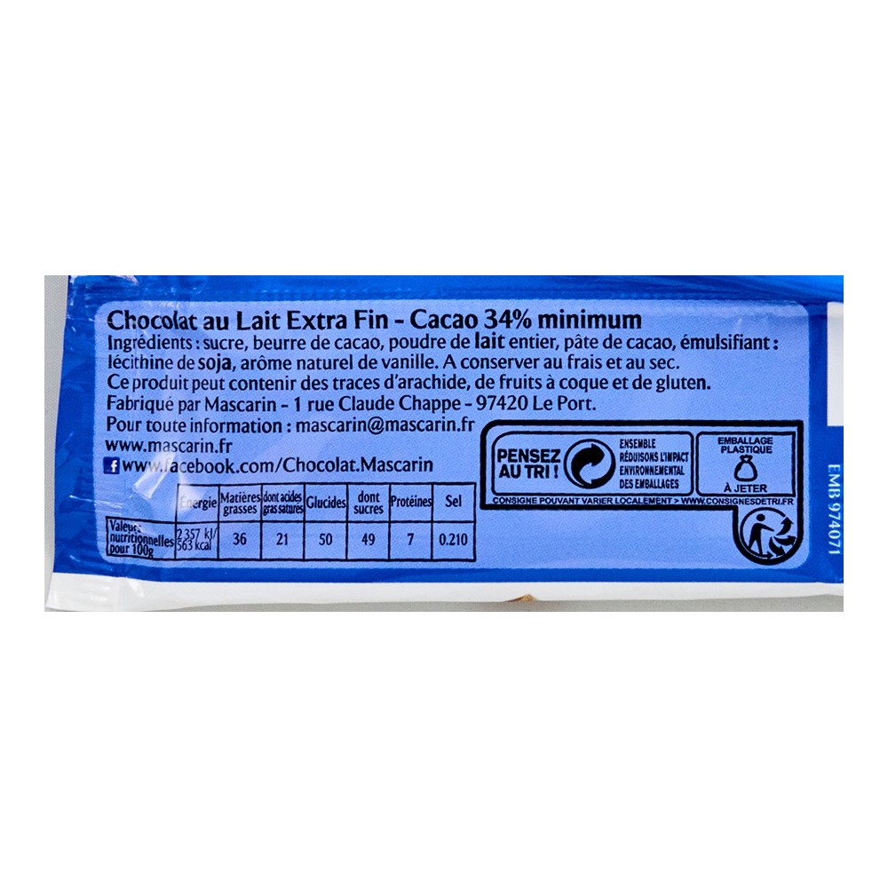 sucre, pulpe de passion (5%), chocolat lait , beurre de cacao, sirop de lactose, sorbitol, gélifiant gélatine de poisson, acidifiant : acide citrique, émulsifiant : lécithine de soja, conservateur : sorbate de potassium, arôme.1