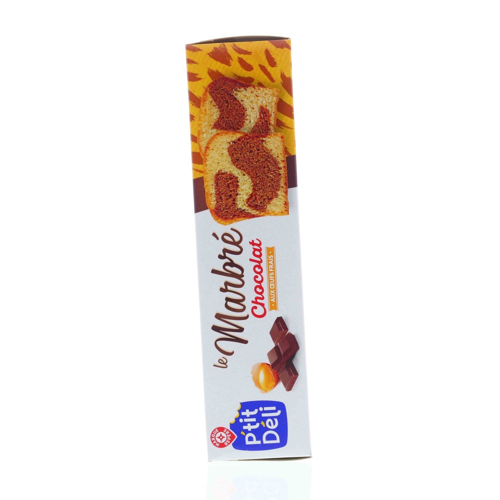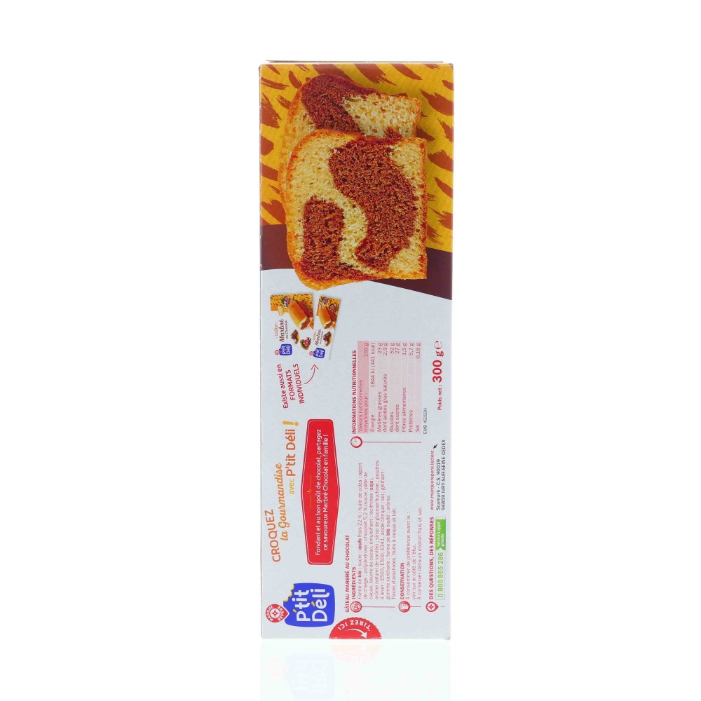 Ingrédients: farine de blé, sucre, oeuf (22%), huile de colza, agent de charge: polydextrose, chocolat (5.2%) (sucre, pâte de cacao, beurre de cacao, émulsifiant : lécithines) extrait de vanille), sirop de glucose-fructose, poudre à lever (E503, E341, E500, acide citrique), sel, gélifiant: gomme xanthane, blé malté, arôme.