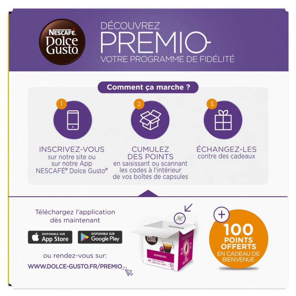 Ingrédients: Capsule de lait : LAIT entier en poudre (81,9%), sucre (17,6%), matière grasse de LAIT anhydre. Capsule de café : Café torréfié moulu.