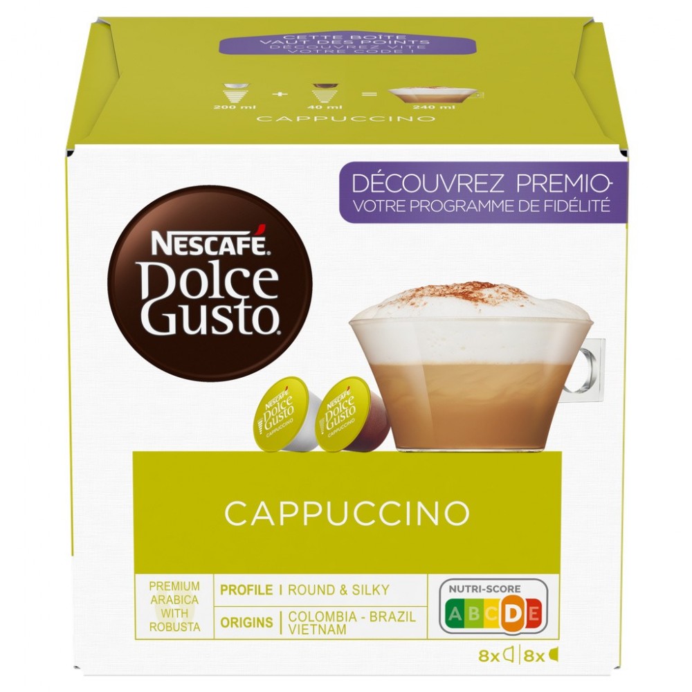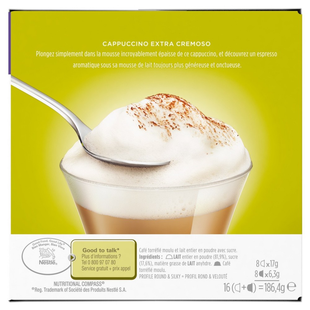NESCAFE DOLCE GUSTO Cappuccino Extra Crema 16 Capsules (8 Lait et 8 Café)