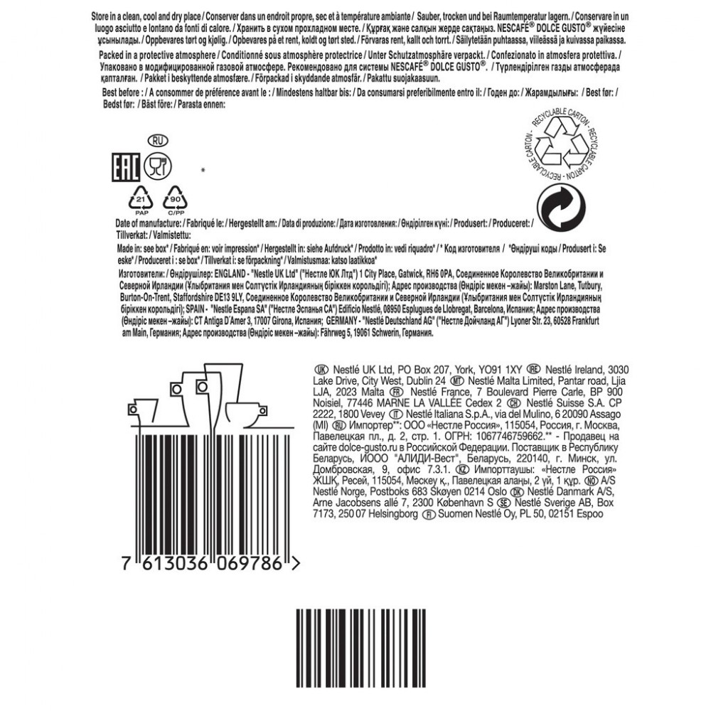 Capsules NESCAFE DOLCE GUSTO Café Au Lait Intenso 16 Capsules