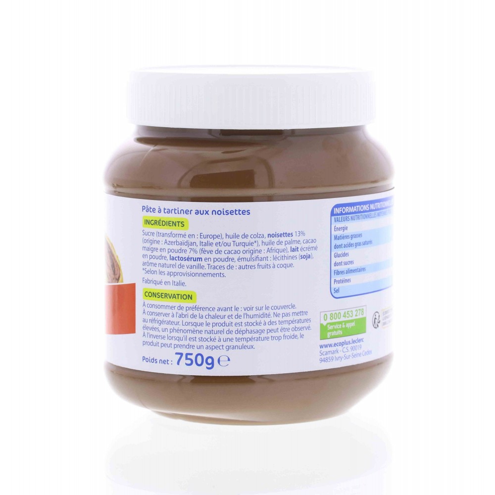 Ingrédients : Sucre, huile de colza, graisse de palme, lactosérum en poudre, cacao maigre en poudre 6,5 %, lactose, noisettes 2 %, poudre de lait écrémé, émulsifiant : lécithines (soja), arômes.