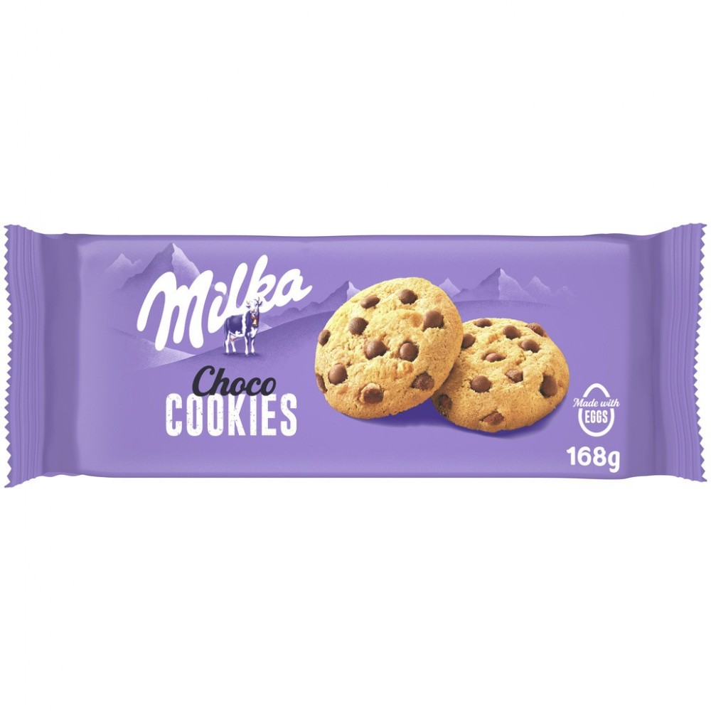 Découvrez Milka Choco Cookies: Un délicieux cookie à la texture sablée avec des pépites fondantes de chocolat Milka au lait du Pays Alpin.