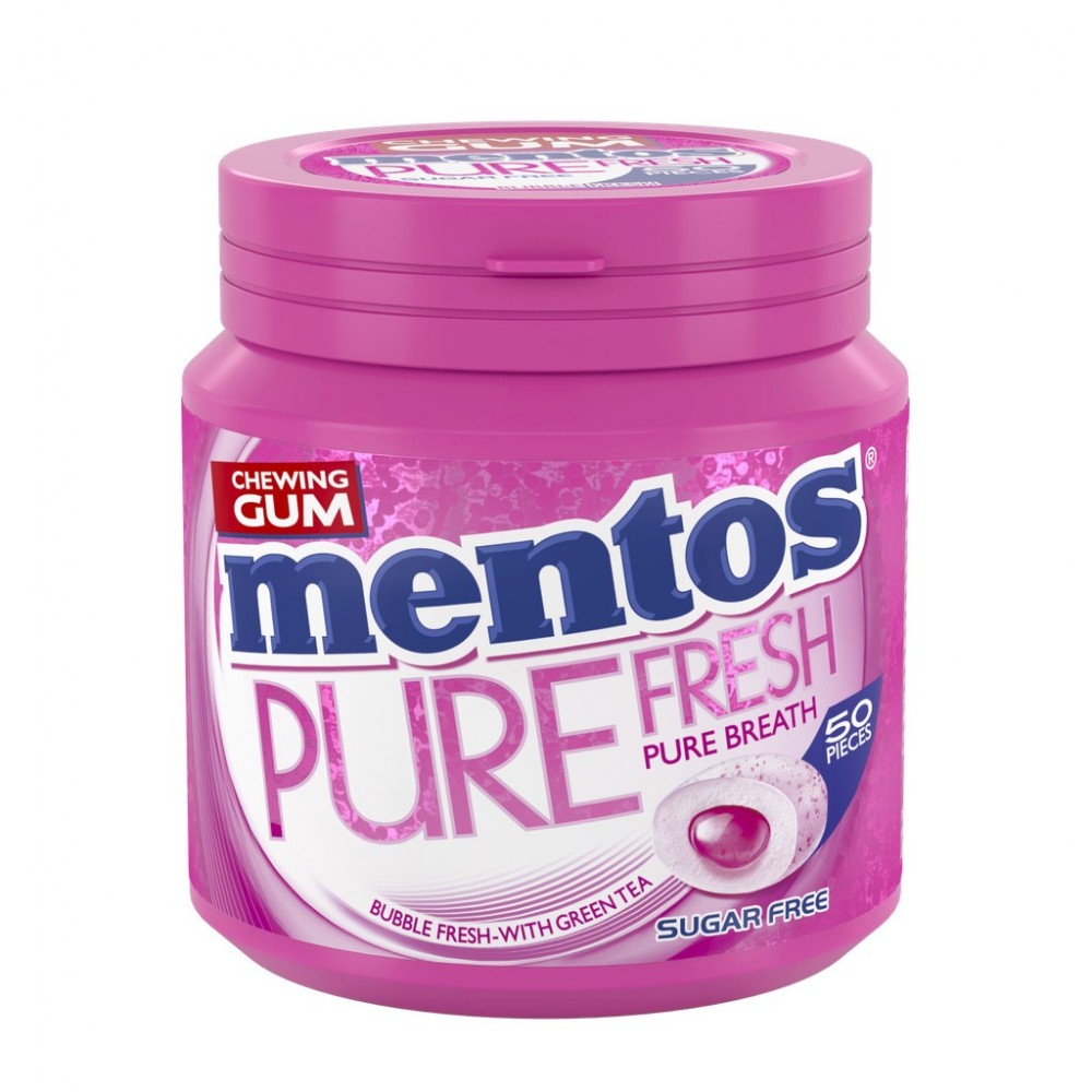 Envie de fraîcheur ? Découvrez Mentos Pure Fresh, de délicieuses dragées de chewing-gum sans sucres en bottle au cœur fourré déclinées sur toute une gamme de parfums. Laissez-vous séduire par Mentos Pure Fresh Bubble : un parfum douceur qui rappelle l'enfance