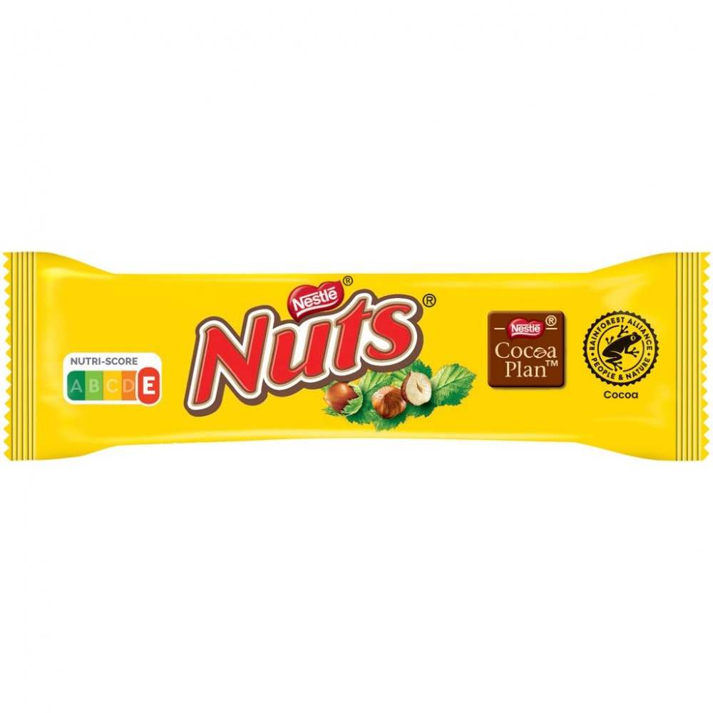 Craquez pour une barre fondante avec des noisettes entières croquantes, du caramel et du chocolat au lait. NUTS est une recette composée d'ingrédients simples, aux saveurs naturelles : un bon chocolat au lait, un nougat fondant à l'extrait naturel de vanille, une barre sans arômes artificiels.