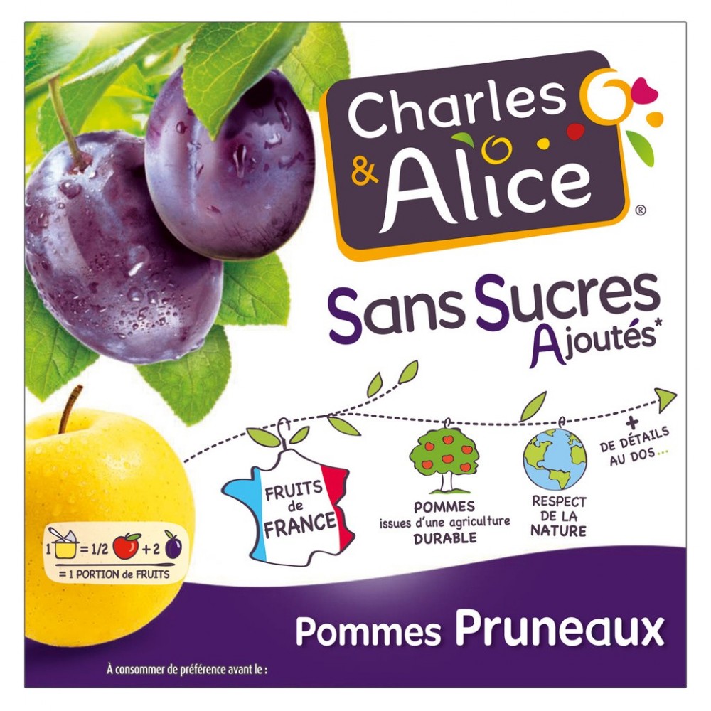 Purée de pommes 50.4%, purée de pruneaux 45% ( pruneau 22.5%, eau ) eau , antioxydant : acide ascorbique,