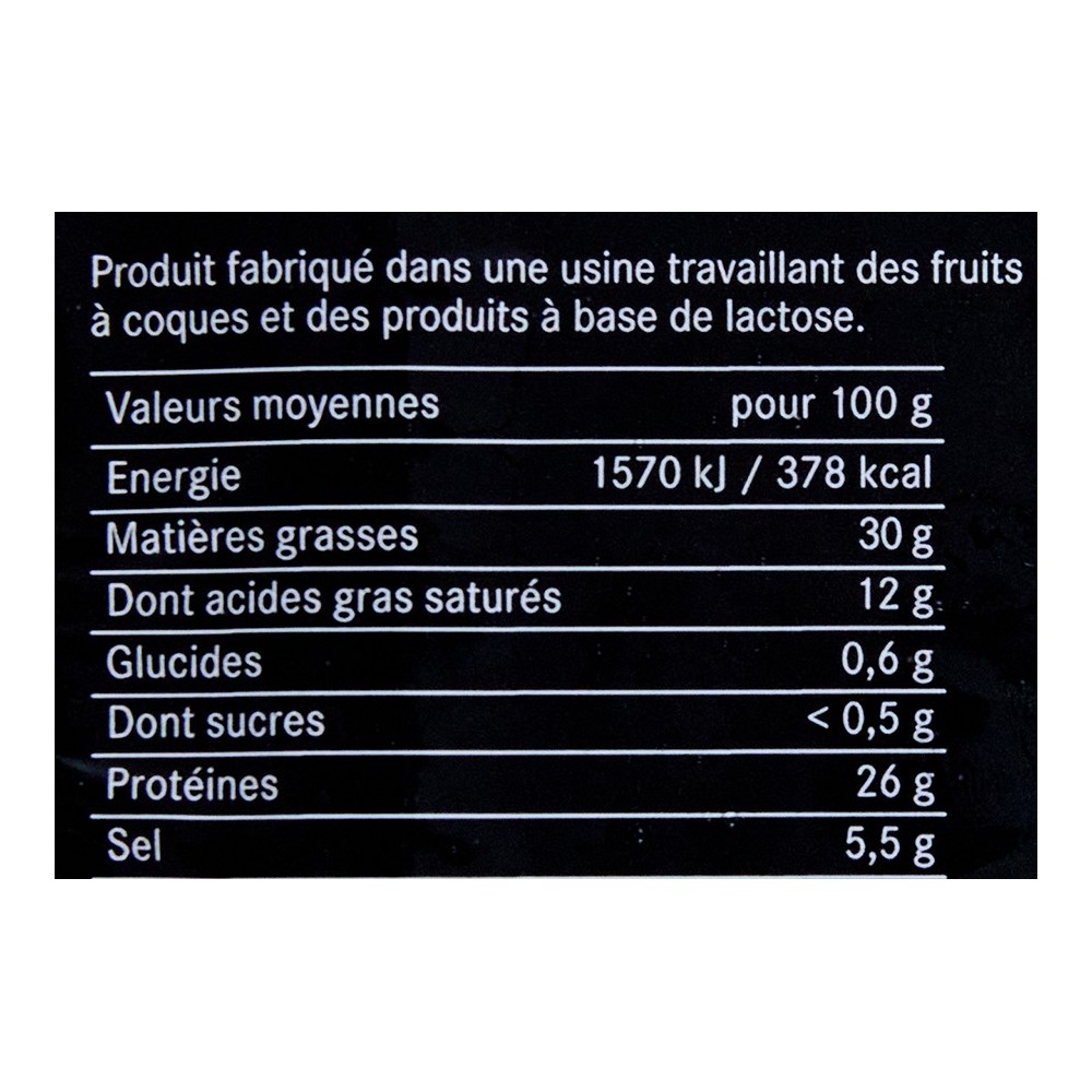 Viande de porc origine UE, sel, lactose, dextrose, saccharose, poivre, ail, conservateur E252, ferments,