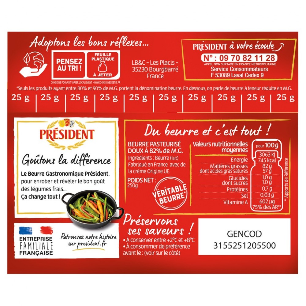 PRESIDENT BEURRE GASTRONOMIQUE DOUX 82%MG PLAQUETTE 250G