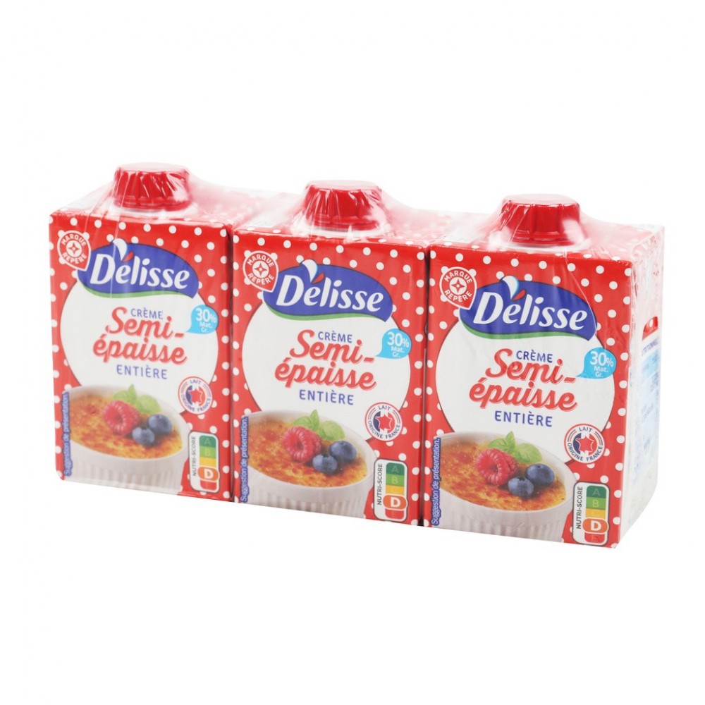 CREME ENTIERE SEMI-EPAISSE à 30 % DE MATIERE GRASSE, STERILISEE UHT