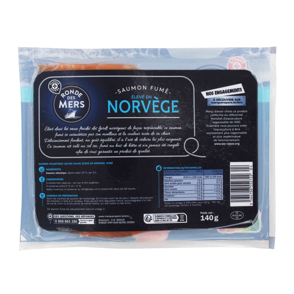 Saumon fume de Norvège - Ronde des Mers - 4T 140G