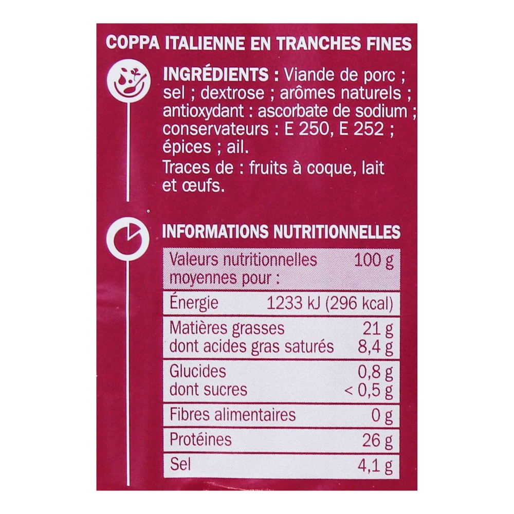 Echine de porc (origine : UE) ; sel ; dextrose ; épices ; arôme naturel ; conservateurs : E250, E252 ; antioxydant : ascorbate de sodium .
