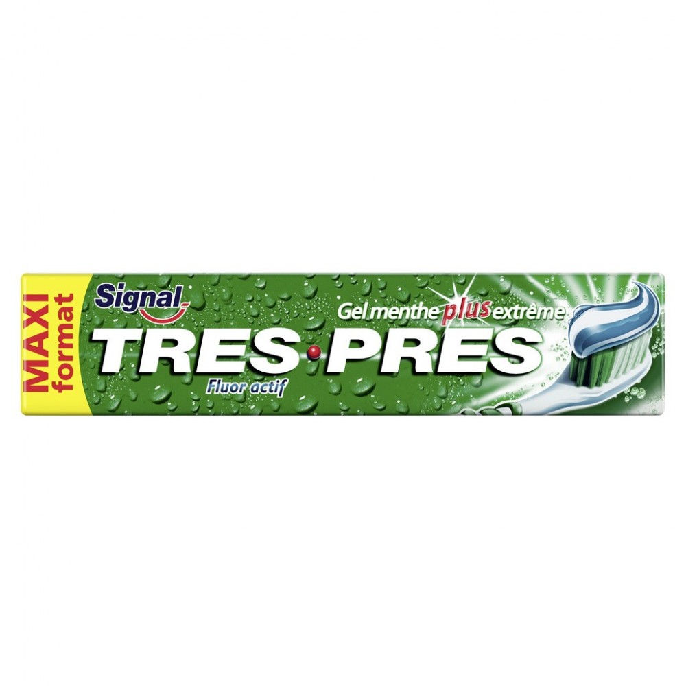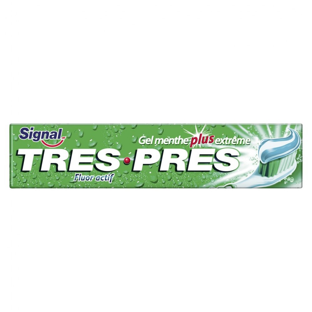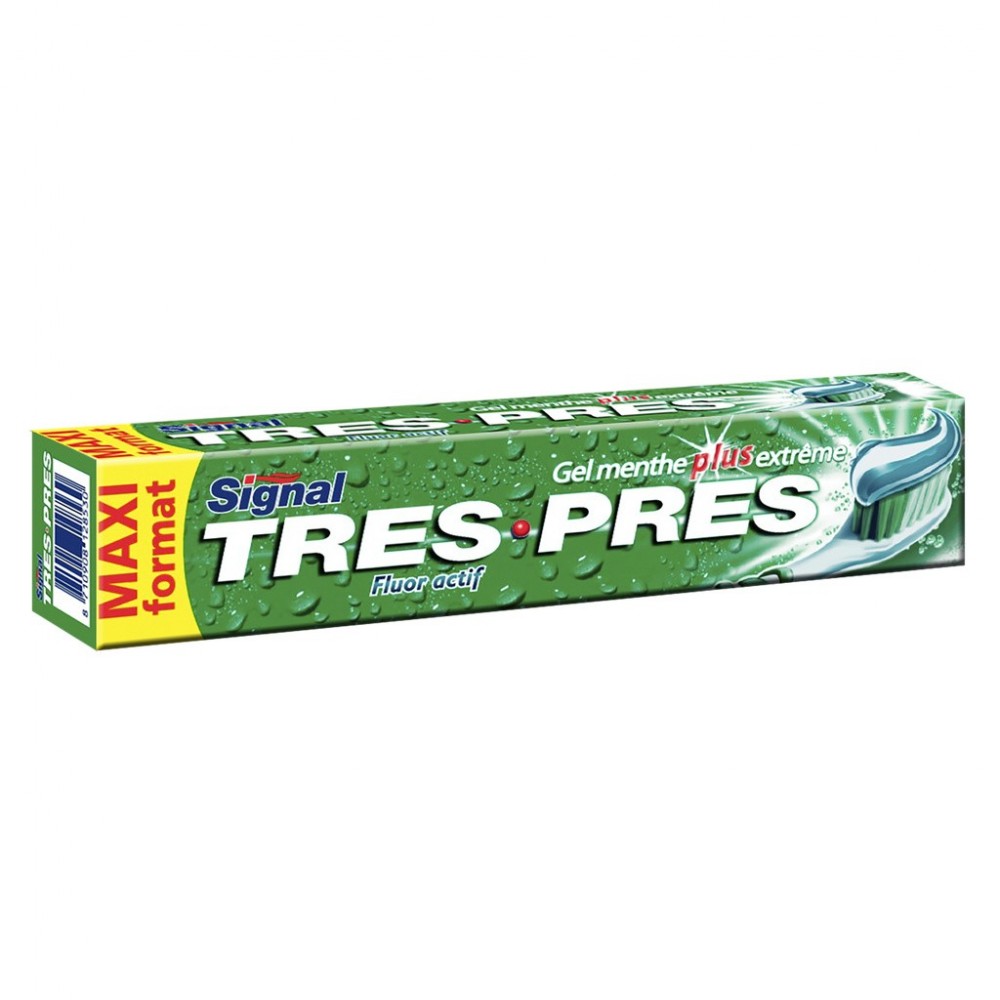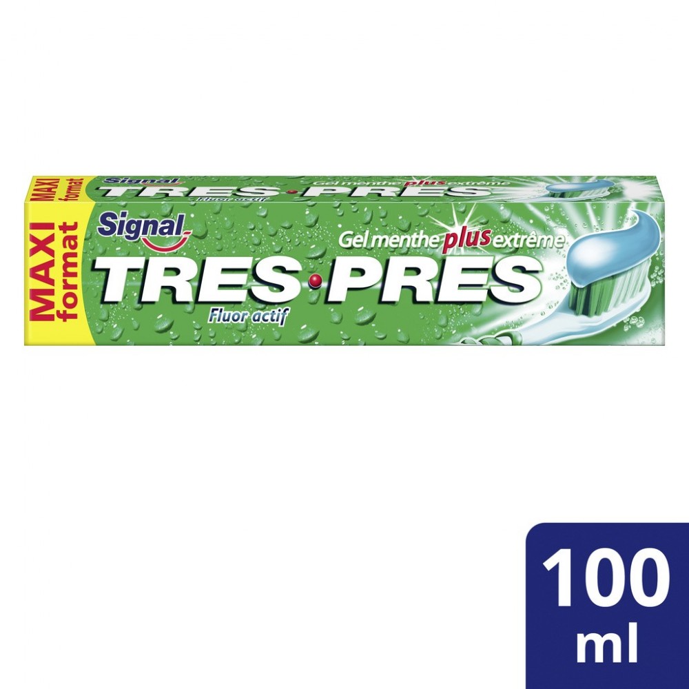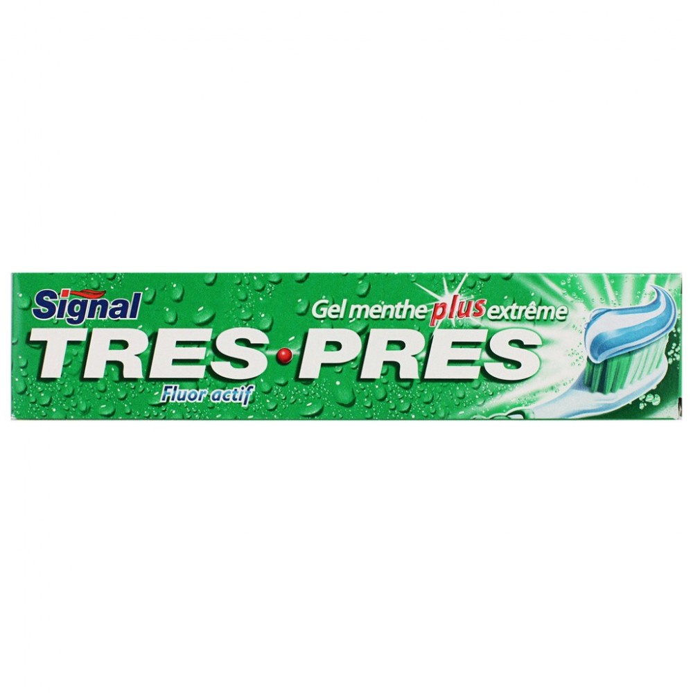 Le dentifrice Signal Très Près garantit une fraîcheur intense longue durée. Sa formule contient une association unique d'essences de menthe extrême pour une haleine durablement purifiée. Elle est également enrichie en fluor pour des dents encore plus fortes. Nos conseils Signal pour une bonne hygiène bucco-dentaire : brossez-vous les dents après chaque repas, changez de brosse à dents Signal tous les 2 à 3 mois et consultez votre dentiste au moins 2 fois par an. Pensez aussi à couper l'eau pendant le brossage. Découvrez aussi d'autres dentifrices Signal comme le dentifrice Soin Fraîcheur et Crystal Gel ou le dentifrice blancheur White Now Ice Cool. Chez Signal, nous pensons que votre sourire est l'expression de votre personnalité et de votre confiance en vous. Notre mission : améliorer la santé bucco-dentaire de tous, pour que chacun d'entre nous libère le pouvoir de son sourire. Signal accompagne les Français depuis 1961 pour leur transmettre les bons gestes, dès le plus jeune âge et démontrer l'importance d'un brossage deux fois par jour, matin et soir. Attentifs à la protection de la planète, nous prenons des mesures pour limiter l'impact environnemental de nos produits. En partenariat avec TerraCycle®, nous avons lancé un programme de recyclage gratuit, pour donner une seconde vie à vos brosses à dents et vos tubes de dentifrice. Avec Signal, chaque sourire compte !