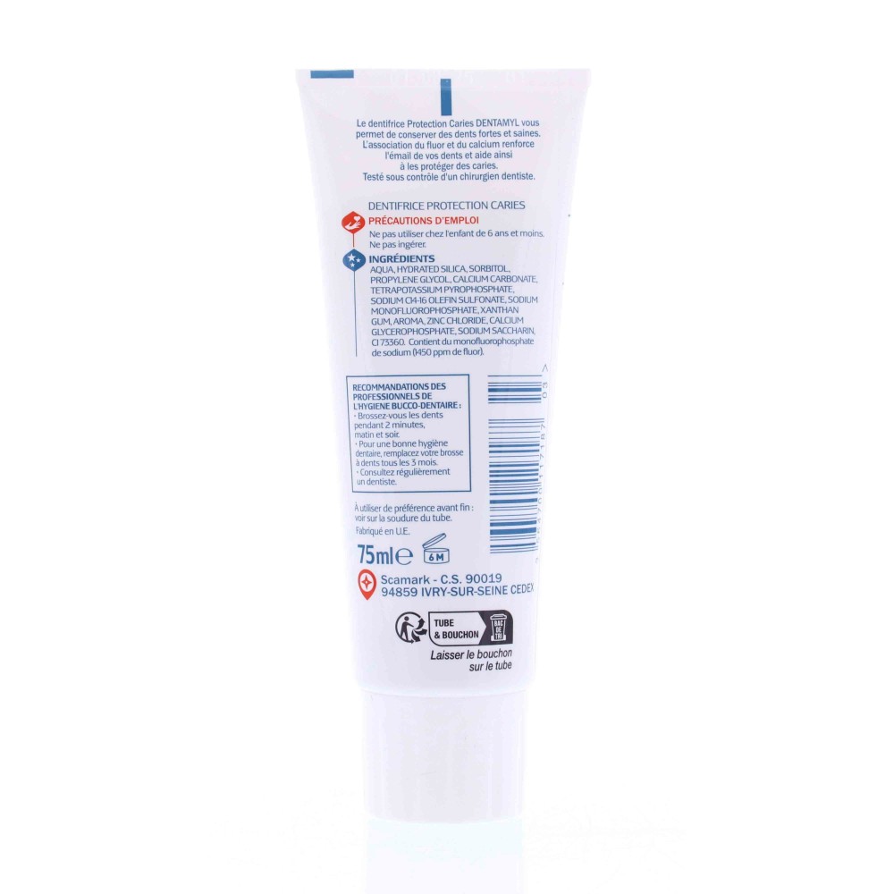 Le dentifrice Protection Caries DENTAMYL vous permet de conserver des dents fortes et saines. L’association du fluor et du calcium renforce l'émail de vos dents et aide ainsi à les protéger des caries.