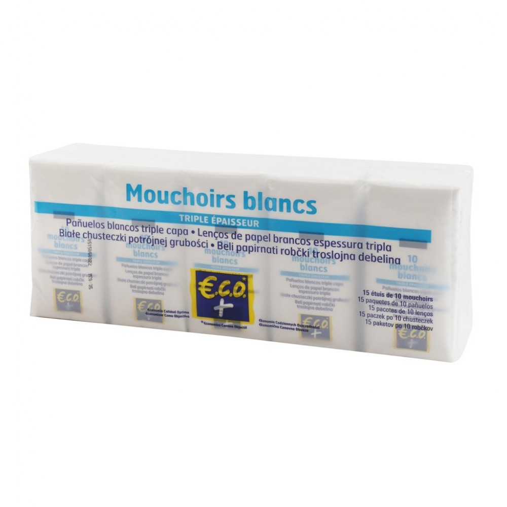Contenance : 15 étuis de 10 mouchoirs.