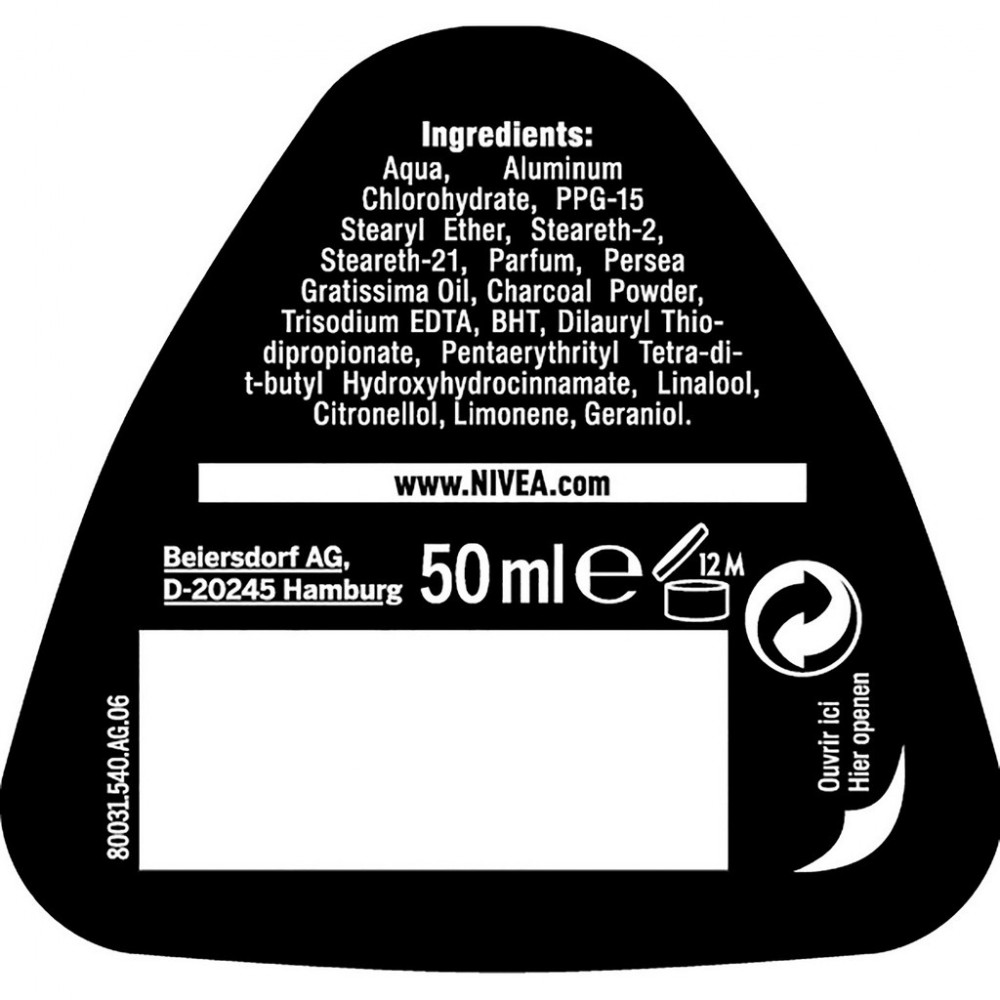 ingrédients: Water, Aluminum Chlorohydrate, PPG-15 Stearyl Ether, Steareth-2, Steareth-21, Parfum | Charcoal Powder, Persea Gratissima (Avocado) Oil, Tocopherol, Trisodium EDTA, Lavandula Oil/Extract, Tetramethyl acetyloctahydronaphthalenes, Terpineol, Pogostemon Cablin Oil, Linalyl Acetate, Linalool, Anethole, Pelargonium Graveolens Flower Oil, Beta-Caryophyllene, Citronellol