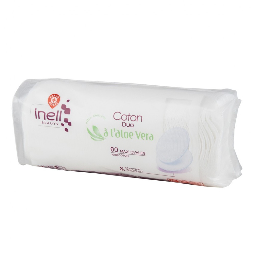 Les cotons duo maxi ovales Inell enrichis en extrait d'aloe vera laisserons une sensation de douceur sur votre peau.
