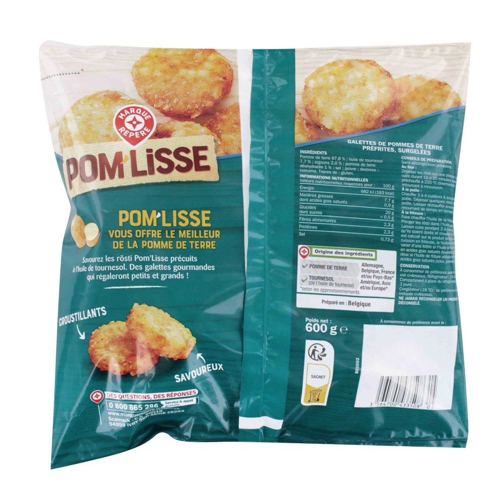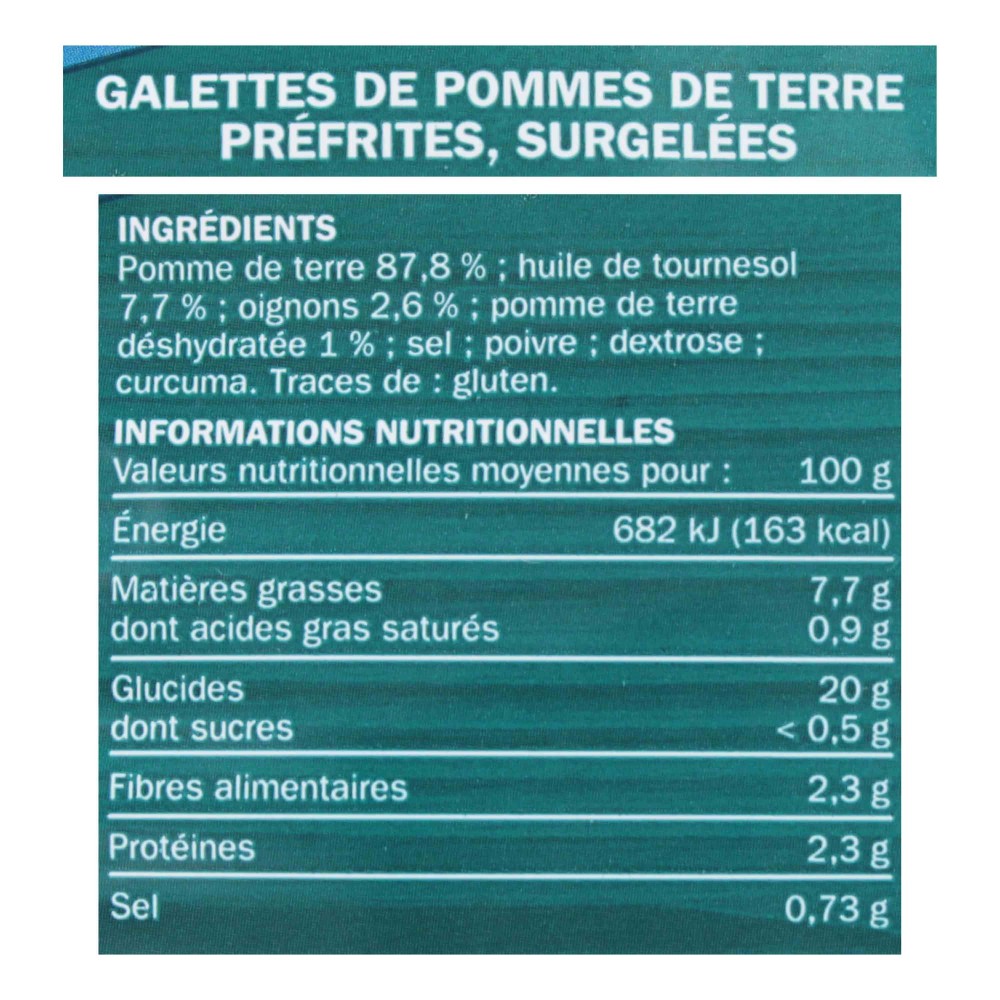 Galettes de pommes de terre préfrites, surgelées