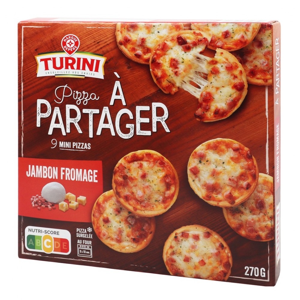 Jambon fromage, 9 MINI PIZZAS, 270g, pizza surgelée