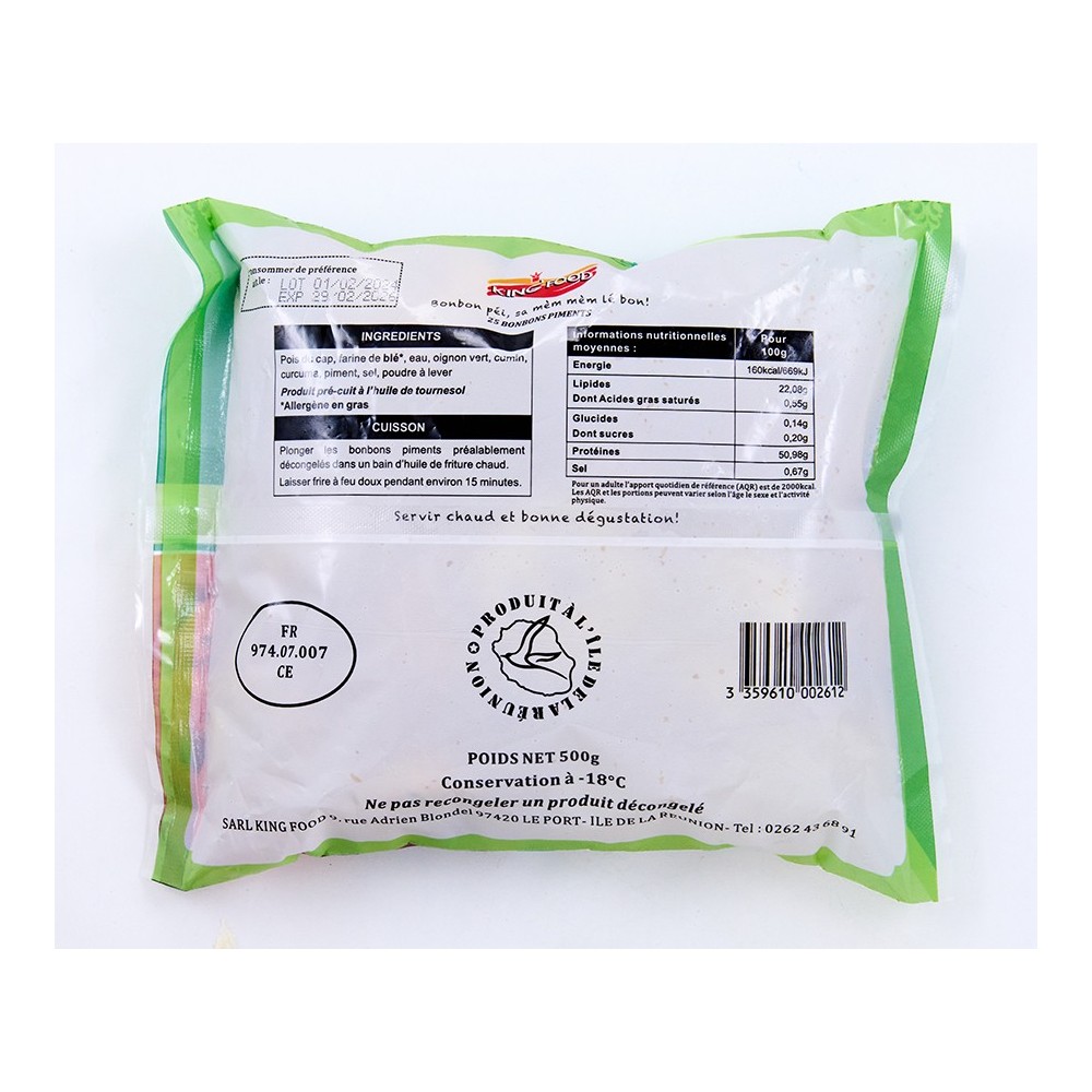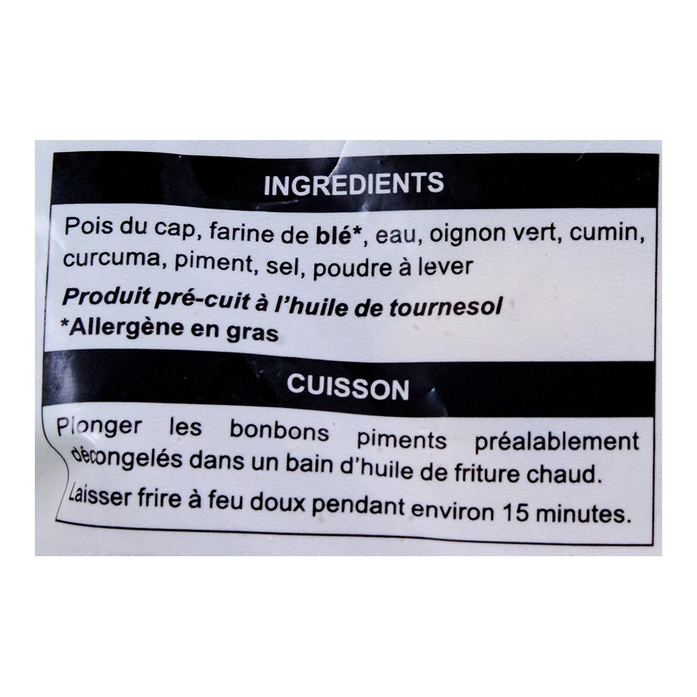 Plonger les bonbons piments préalablement decongeles dans un bain d uile de friture chaud. Laisser frire a feu doux pendant 15 minutes