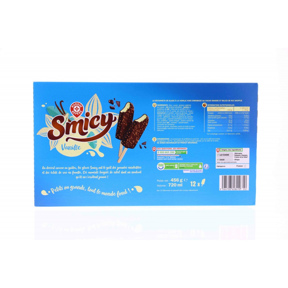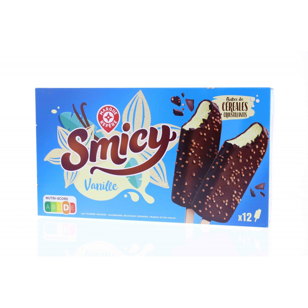 12 bâtonnets de glace à la vanille avec enrobage au cacao maigre et billes de riz soufflé