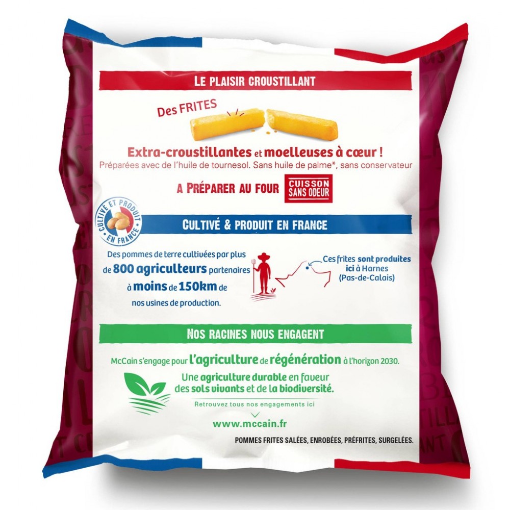 Des frites extra croustillantes produites en France à partir de pommes de terre françaises. Préparées sans huile de palme et sans conservateur. Produit végétarien