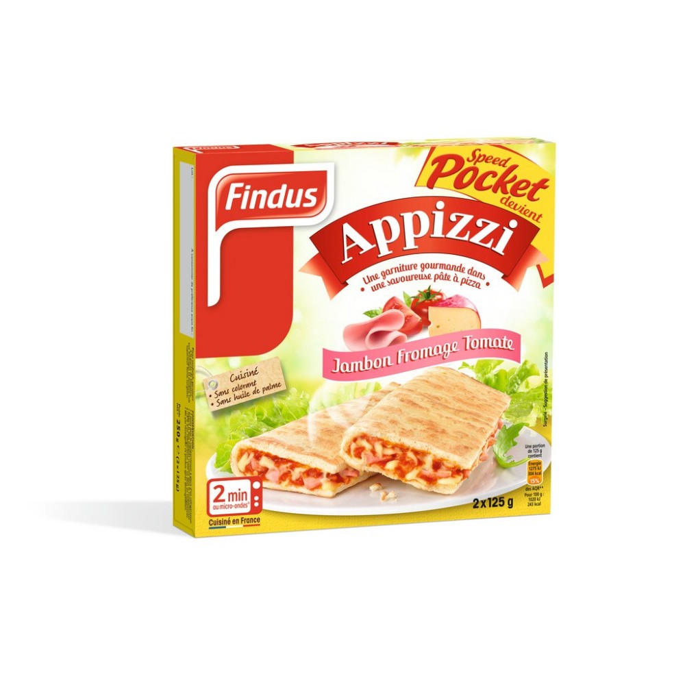 2 min* au micro-ondes : Retirez le produit encore surgelé de son film protecteur. Déposez-le dans le micro-ondes, sur le support en carton. Faites cuire à 900 watts : 1 Appizzi : 2 minutes*, 2 Appizzi : 3 minutes*. L'astuce Findus : Pour une pâte croustillante, vous pouvez passer le produit sur la tranche, avec la garniture vers le haut, quelques instants dans un grille pain adapté, dès sa sortie du micro-ondes. 15 min* au four traditionnel : Préchauffez votre four à 180°C. Retirez le produit encore surgelé de son film protecteur, ôtez le support en carton fourni. Faites réchauffer votre Appizzi, en le plaçant à mi-hauteur de votre four, sur une plaque adaptée, pendant 15 minutes environ*. Attendez 2 minutes et régalez-vous ! Adaptez le temps de cuisson à votre équipement.
