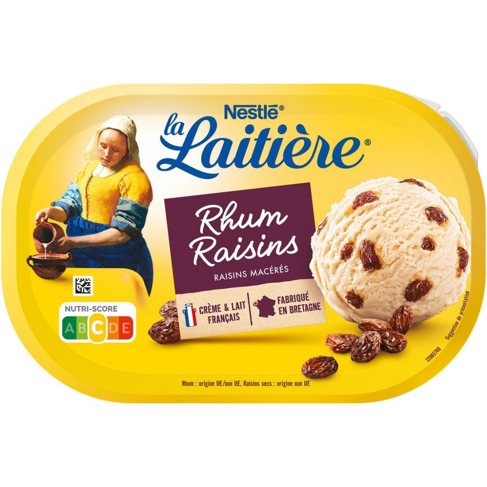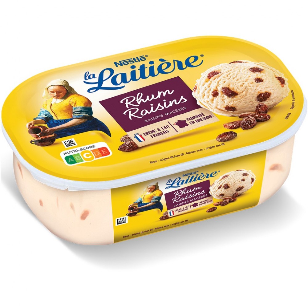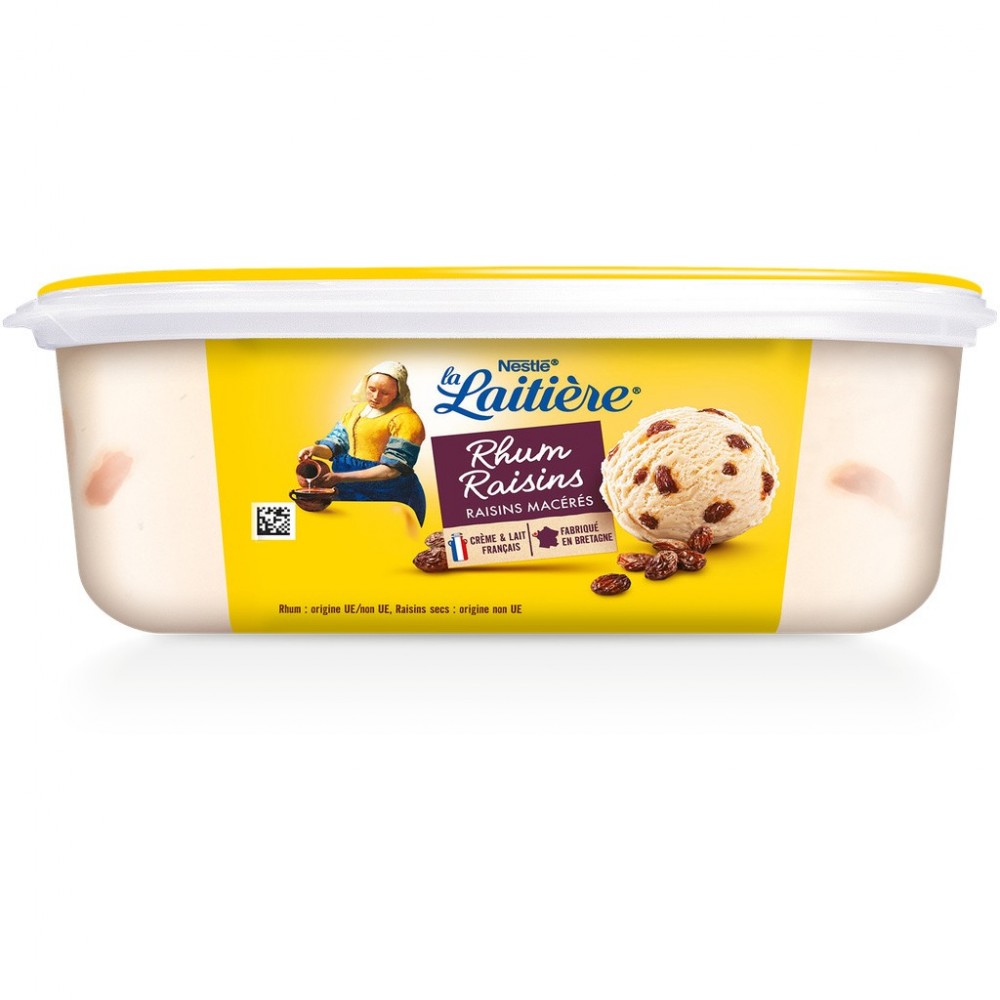 Succombez à la gourmandise du bac La Laitière Rhum Raisins. Une délicieuse crème glacée au rhum avec ses raisins entiers macérés. Une recette gourmande, fabriquée en Bretagne avec le bon lait de producteurs français.