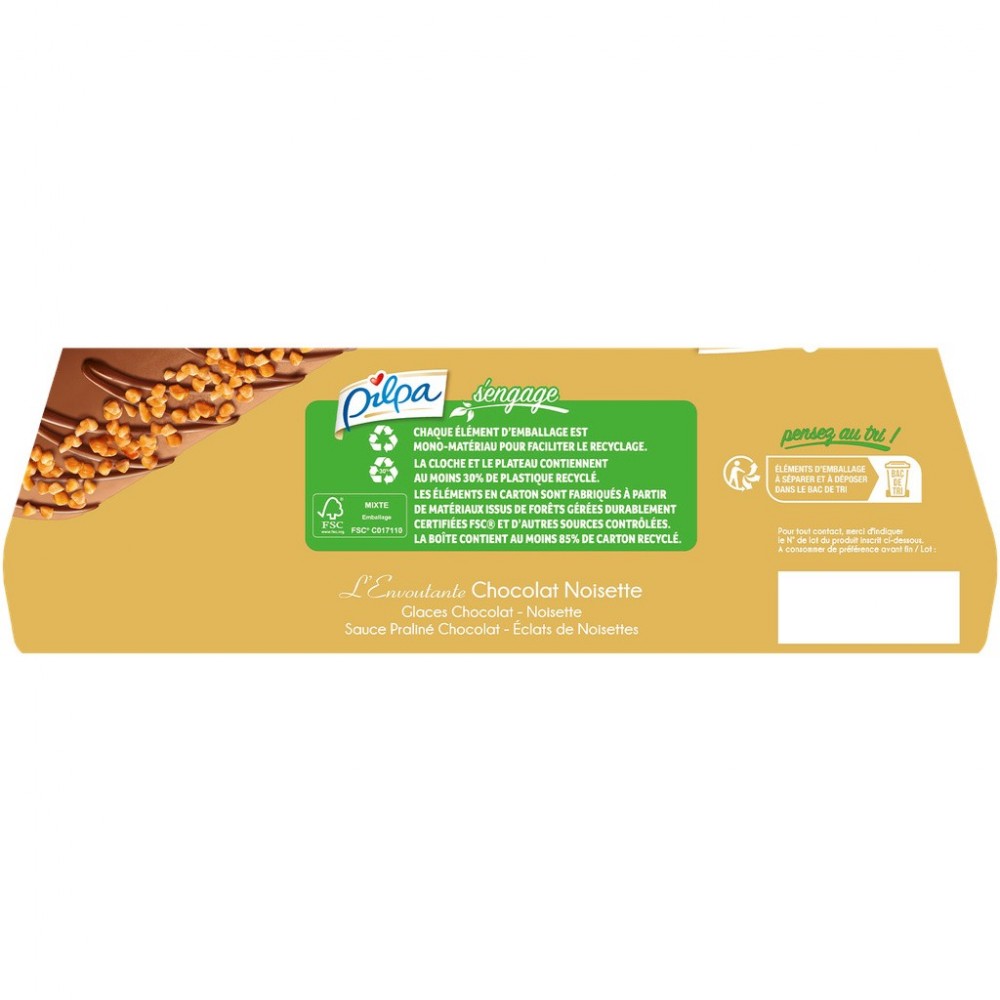 Succombez à l'association parfaite de glaces chocolat et noisette associées à la douceur d'une sauce praliné, le tout avec des éclats de noisettes. Une belle promesse de gourmandise pour les fêtes de fin d'année ! Glacier français.