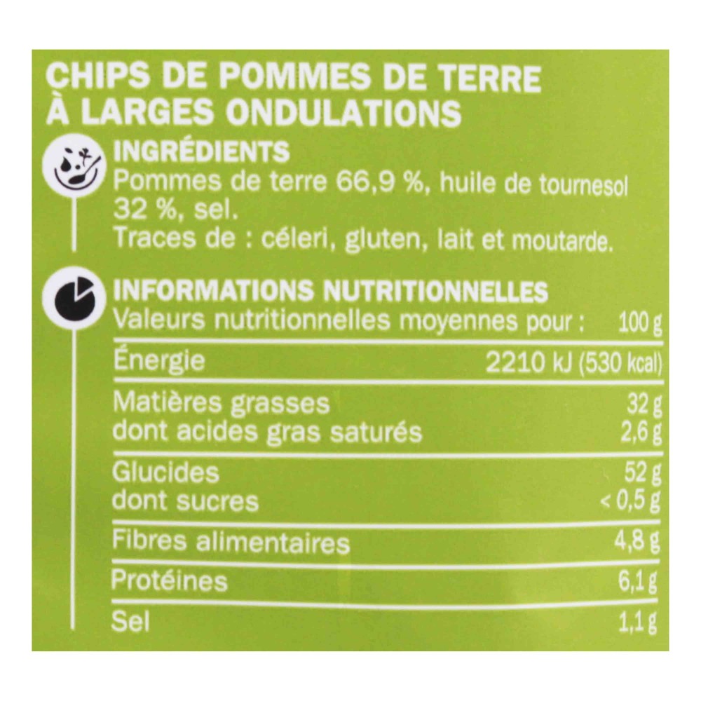 Ingrédients: Pommes de terre 66,9 %, huile de tournesol 32 %, sel.
