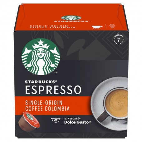 Découvrez les capsules STARBUCKS Single-Origin Colombia by NESCAFÉ DOLCE GUSTO, un café 100% pur Arabica d'origine Colombie, à préparer chez vous avec votre machine NESCAFÉ DOLCE GUSTO. Savourez ce café d'origine Colombie au corps rond, aux saveurs fruitées et à la note caractéristique de noisette.Un format boîte contenant 12 capsules vous permet de préparer 12 tasses de café Espresso Colombia. Intensité 7.