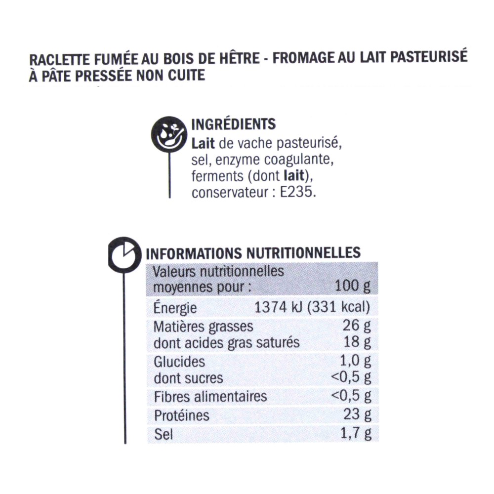 Raclette fumée au bois de hêtre - Fromage au lait pasteurisé à pâte pressée non cuite