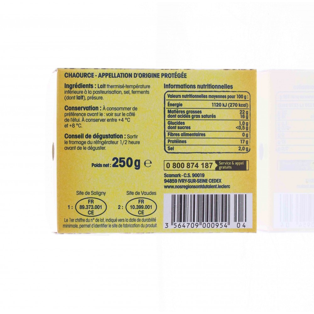 CHAOURCE - APPELLATION D'ORIGINE PROTÉGÉE - [FROMAGE AU LAIT THERMISÉ- TEMPÉRATURE INFÉRIEURE À LA PASTEURISATION - Fromage à pâte molle et croûte fleurie à prédominance lactique au lait thermisé / Non étiqueté]