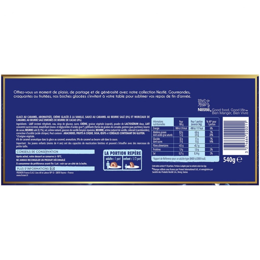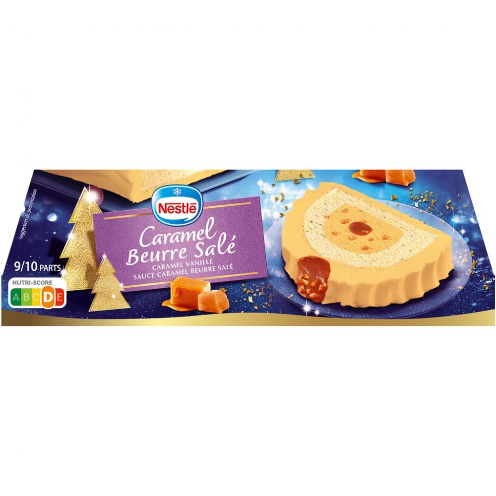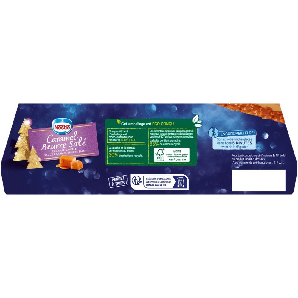 Succombez à l'ultra-gourmandise avec une bûche composée d'une glace caramel avec des éclats au caramel croquants, d'une crème glacée vanille et d'une onctueuse sauce au caramel beurre salé. Un classique pour toute la famille ! Recette sans colorant artificiel ni arôme artificiel.