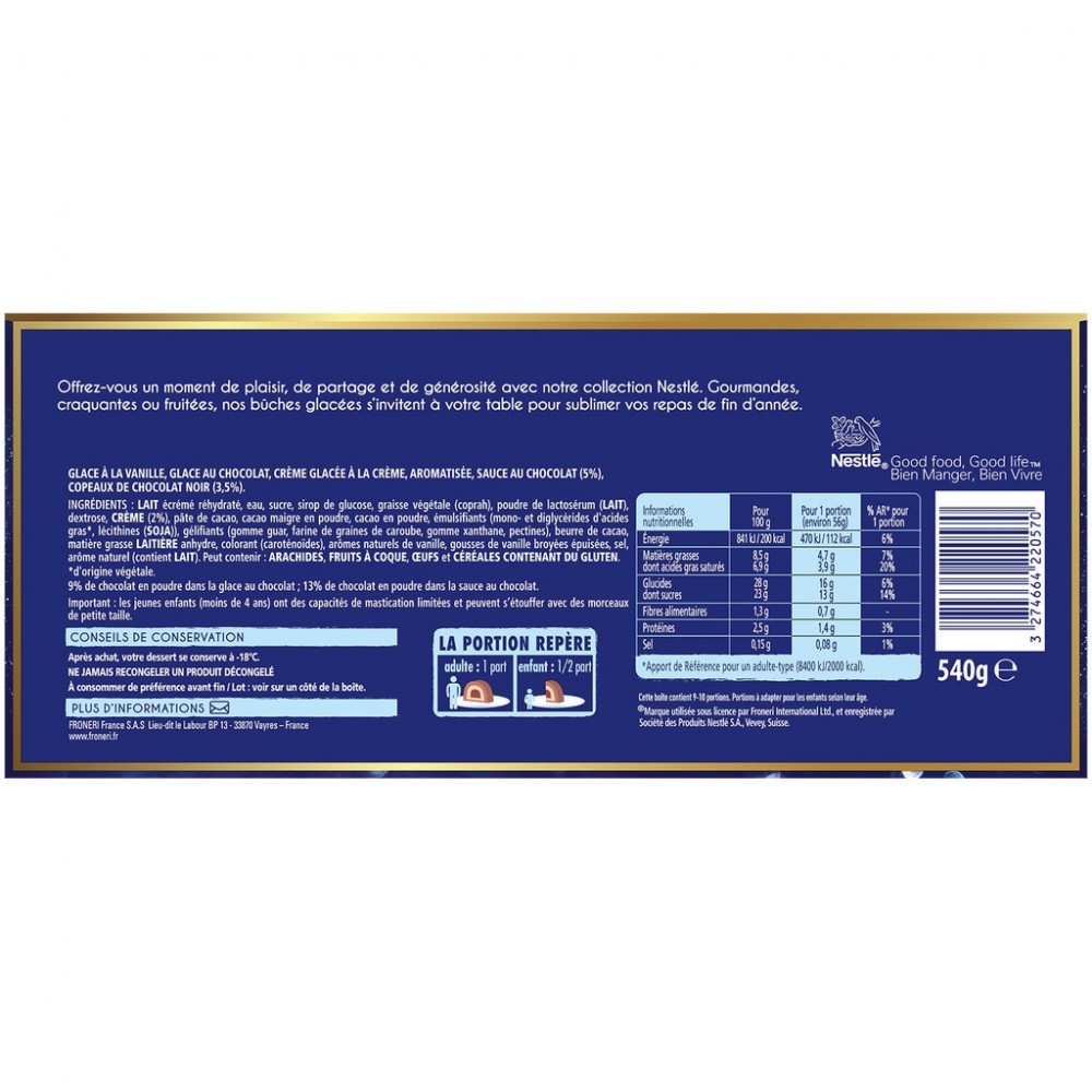 La traditionnelle Dame Blanche revisitée en bûche glacée ! L'association délicieuse de glaces parfum crème, vanille et chocolat pour un moment gourmand en famille !